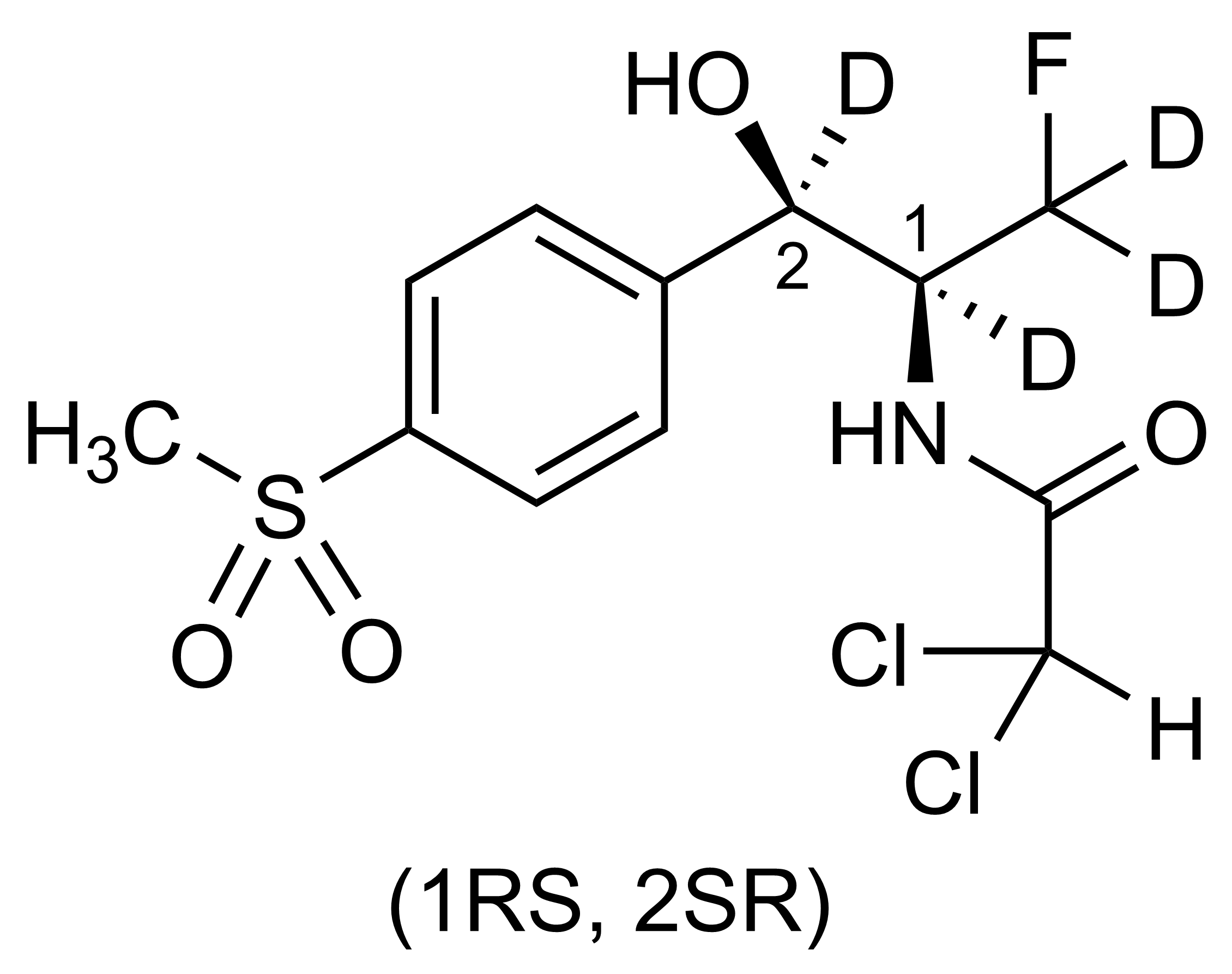 | Chemical name | 2,2-Dichloro-N-[(1RS,2SR)-1,2-dideutero-2-hydroxy-1-fluoromethyl-D2-2-(4-methylsulfonylphenyl) ethyl] acetamide (mixture of enantiomers) |