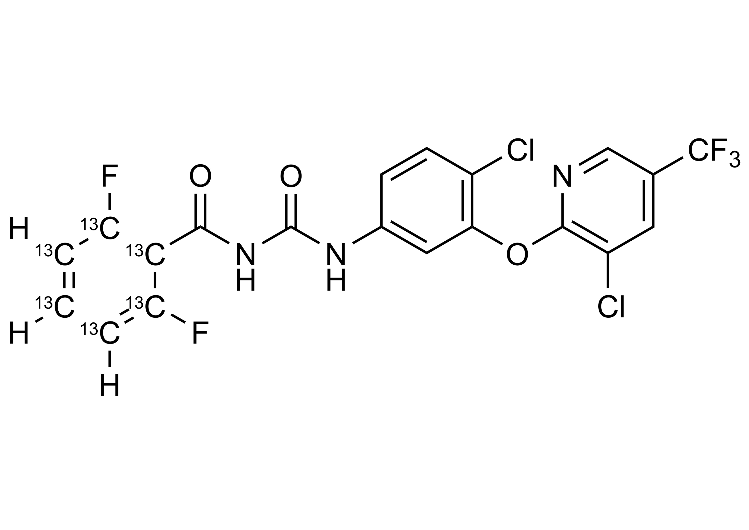 | Chemical name | N-[[[4-Chloro-3-[[3-chloro-5-(trifluoromethyl)-2-pyridinyl]oxy]phenyl]amino] carbonyl]-2,6-difluorobenzamide-13C6 |