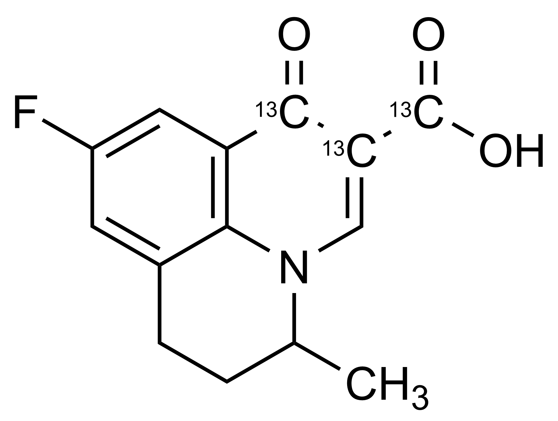 | Chemical name | 9-Fluoro-5-methyl-1-oxo-6,7-dihydro-1H,5H-pyrido[3,2,1-ij] quinoline-2-carboxylic acid-13C3 |